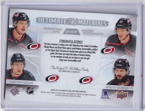 Aho Necas Svechnikov Burns Ultimate Quad Materials Jersey /149 Card QM-HURR 2023-24 Upper Deck Ultimate Collection Carolina Hurricanes