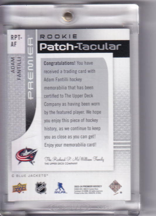 Adam Fantilli Rookie Patch-Tacular /25 RPT-AF 2023-24 Upper Deck Premier Rookie Card RC Columbus Blue Jackets