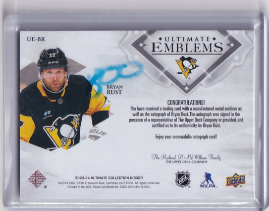Bryan Rust Ultimate Emblems Auto Card UE-BR 2023-24 Upper Deck Ultimate Collection Pittsburgh Penguins