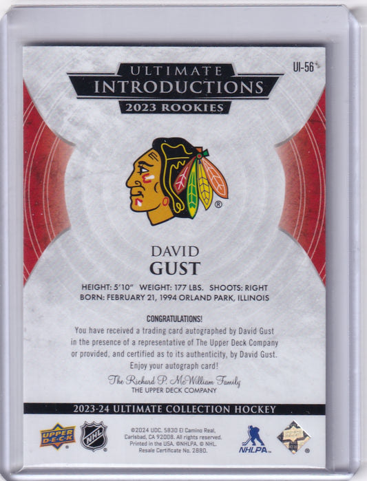 David Gust Ultimate Introductions Rookie Auto Card UI-56 2023-24 Upper Deck Ultimate Collection Rookie Card RC Chicago Blackhawks