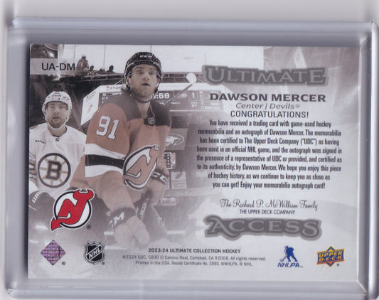 Dawson Mercer Ultimate Access Patch Auto /99 Card UA-DM 2023-24 Upper Deck Ultimate Collection New Jersey Devils