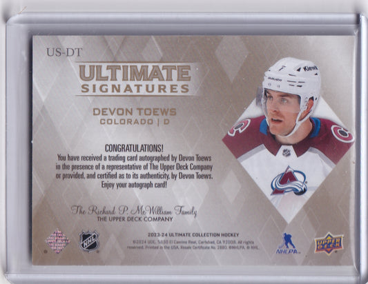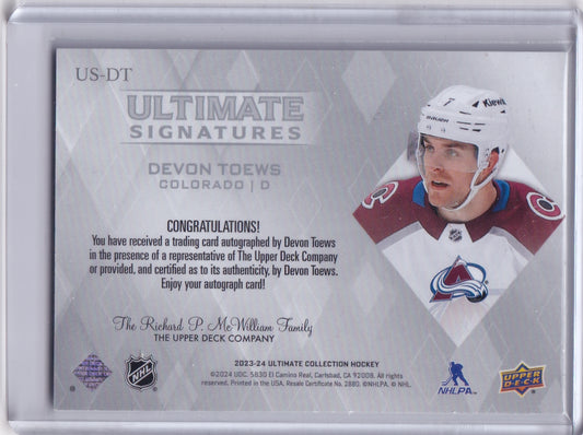 Devon Toews Ultimate Signatures Auto Card US-DT 2023-24 Upper Deck Ultimate Collection Colorado Avalanche