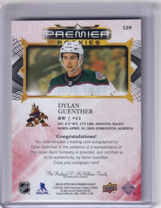 Dylan Guenther Rookie Auto #129 2022-23 Upper Deck Premier Rookie Card RC Arizona Coyotes