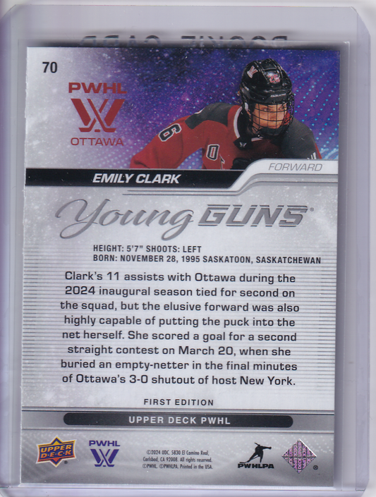 EMILY CLARK 2024 PWHL Upper Deck Young Guns Rookie Card #70