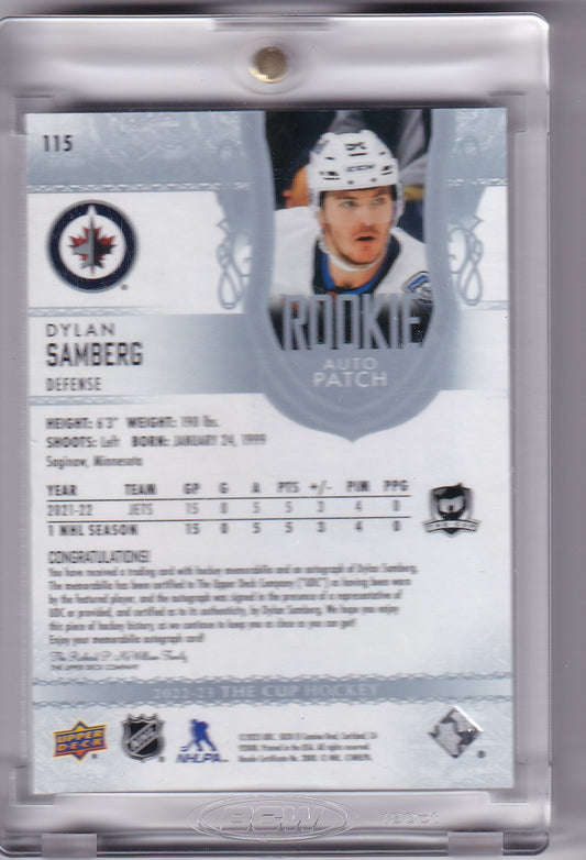 Dylan Samberg Rookie Patch Auto /249 #115 2022-23 Upper Deck The Cup Rookie Card RC Winnipeg Jets