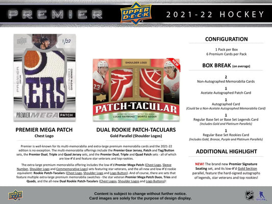 2021-22 Upper Deck UD PREMIER Hockey Hobby BoxRegular price $349.99 CADRegular priceUnit price / per-