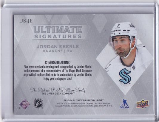 Jordan Eberle Ultimate Signatures Auto Card US-JE 2023-24 Upper Deck Ultimate Collection Seattle Kraken