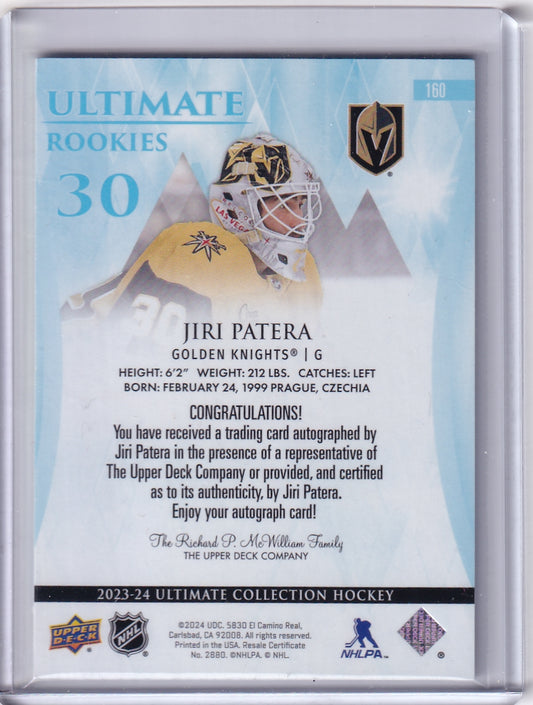 Jiri Patera Ultimate Rookies Auto Card /299 #160 2023-24 Upper Deck Ultimate Collection Rookie Card RC Vegas Golden Knights