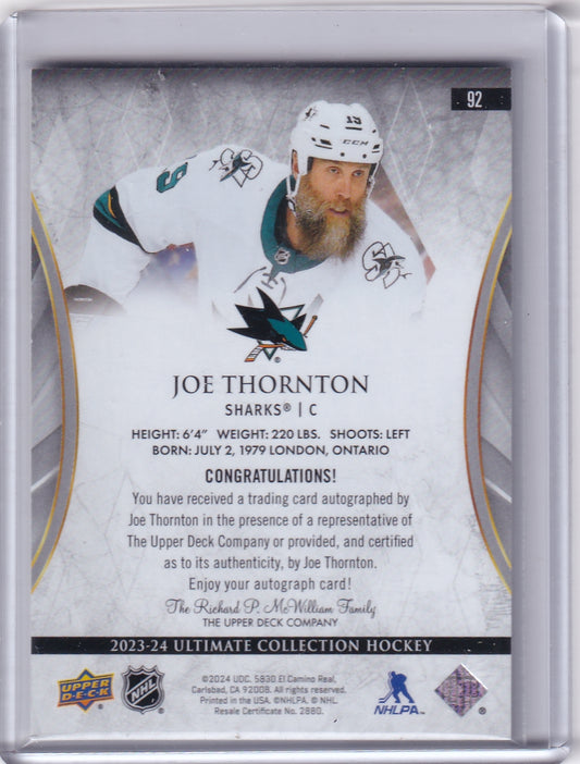 Joe Thornton Gold Auto /25 Card #92 2023-24 Upper Deck Ultimate Collection San Jose Sharks