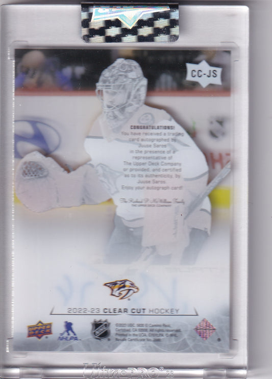 Juuse Saros Clear Cut Auto CC-JS 2023-24 Upper Deck Clear Cut Nashville Predators