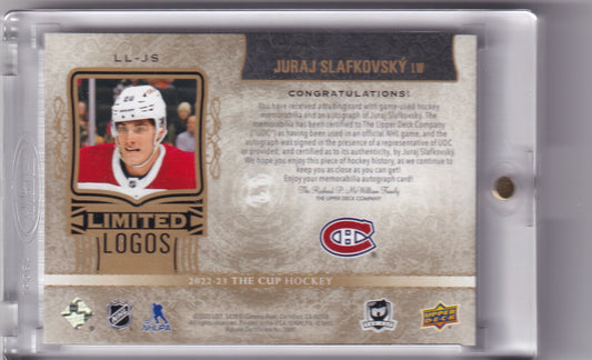 Juraj Slafkovsky Limited Logos Rookie Patch Auto /50 Rookie Card RC #LL-JS 2022-23 UD The Cup Montreal Canadiens