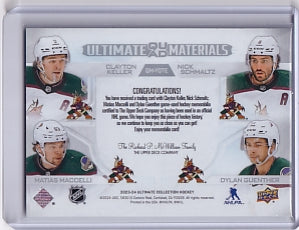 Keller Schmaltz Maccelli Guenther Ultimate Quad Materials Jersey /149 Card QM-YOTE 2023-24 Upper Deck Ultimate Collection Arizona Coyotes