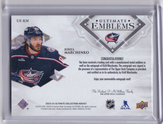 Kirill Marchenko Ultimate Emblems Auto Card UE-KM 2023-24 Upper Deck Ultimate Collection Columbus Blue Jackets