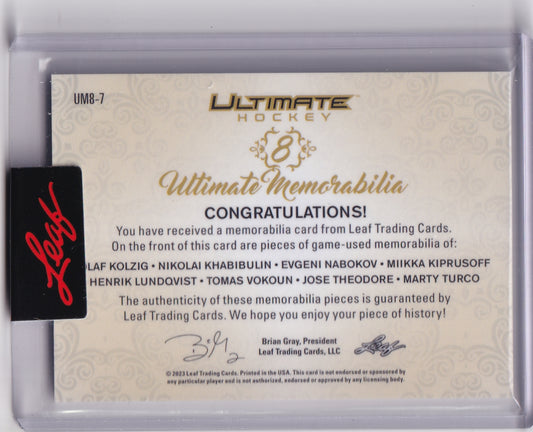 Kolzig Nabokov Lundqvist Theodore Khabibulin Kiprusoff Vokoun Turco /25 UM8-7 2023-24 Leaf Ultimate