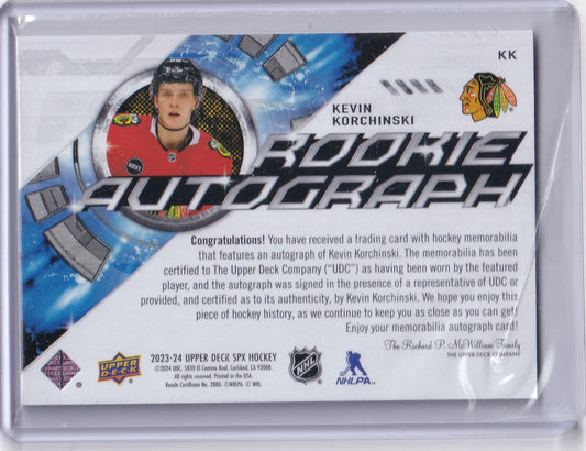 Kevin Korchinski Rookie Jersey Auto /375 KK 2023-24 Upper Deck SPX Rookie Card RC Chicago Blackhawks