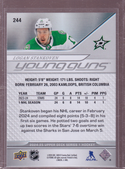 LOGAN STANKOVEN 2024-25 Upper Deck UD Young Guns Rookie Card #244 RC Dallas Stars