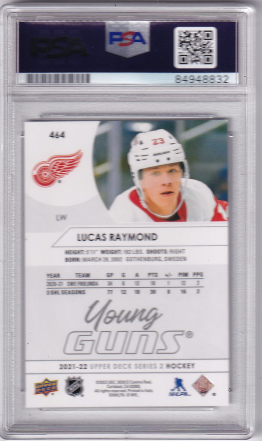 Lucas Raymond 2021-22 Upper Deck Young Guns Rookie Card #464 Detroit Red Wings PSA/DNA Autographed signed auto RC
