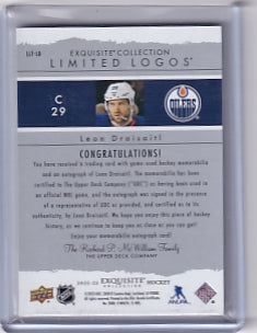 Leon Draisaitl Exquisite Collection Limited Logos Patch Auto 03/15 Card LLT-LD 2022-23 Upper Deck Exquisite Collection (2023-24 UD The Cup Update) Edmonton Oilers