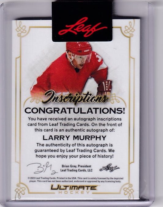 Larry Murphy Inscriptions Auto /25 2023-24 Leaf Ultimate Detroit Red Wings