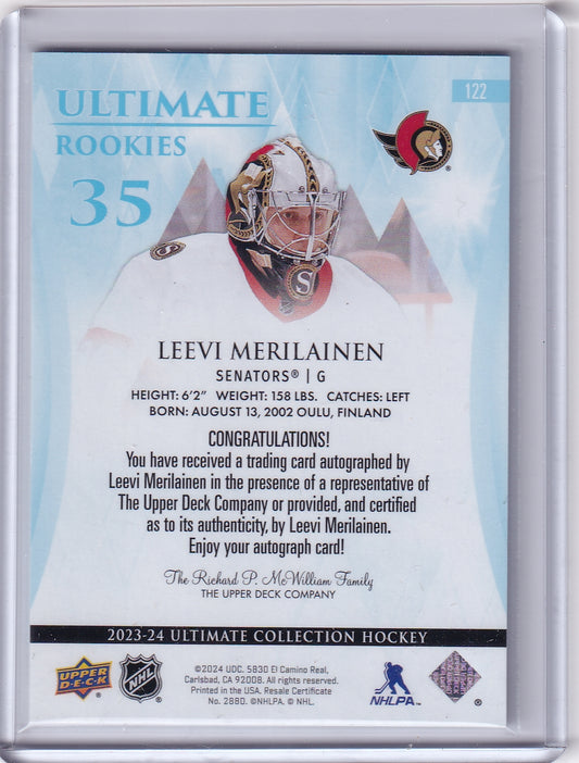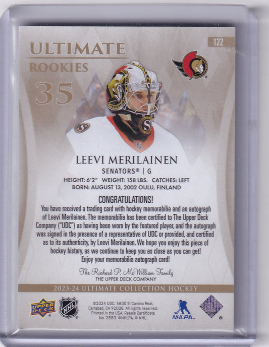 Leevi Merilainen Ultimate Rookies Auto Card /299 #122 2023-24 Upper Deck Ultimate Collection Rookie Card RC Ottawa Senators