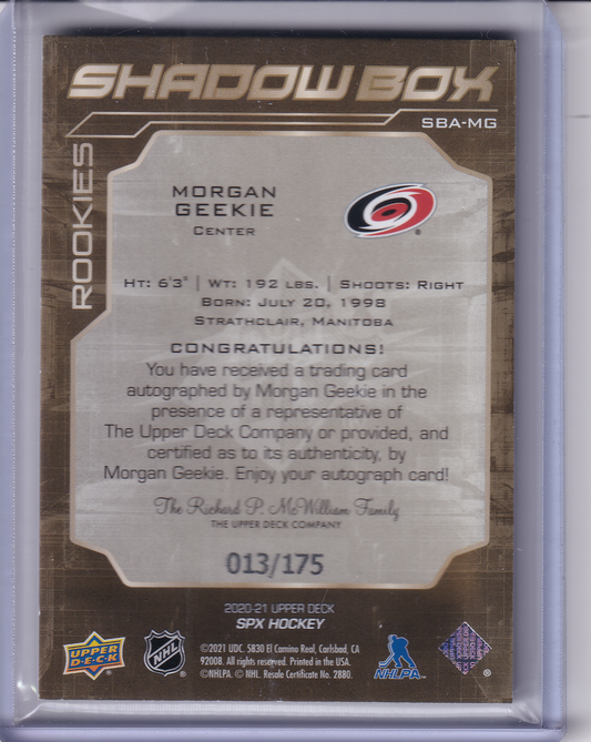 MORGAN GEEKIE 2020-21 SPX Shadow Box Auto Rookies 013/175 Carolina Hurricanes