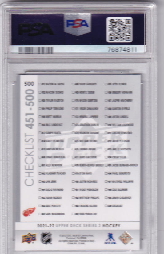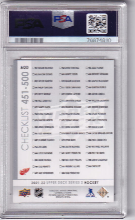 Moritz Seider / Lucas Raymond 2021-22 Upper Deck Young Guns Checklist #500 PSA6 / DNA 10 Autographed Rookie RC Detroit Red Wings signed auto