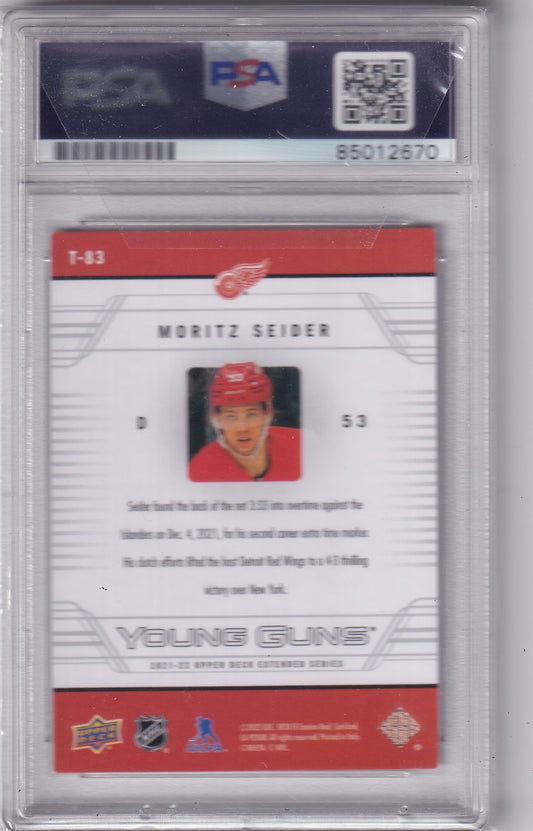 Moritz Seider 2021-22 Upper Deck Young Guns Tribute T-83 Detroit Red Wings PSA/DNA Autographed Rookie signed auto RC