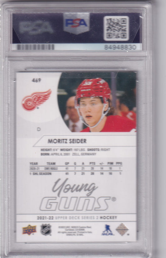 Moritz Seider 2021-22 Upper Deck Young Guns Rookie Card #469 Detroit Red Wings PSA/DNA Autographed Rookie signed auto RC