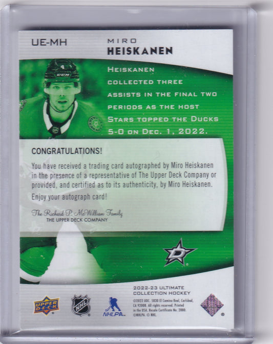 Miro Heiskanen Ultimate Emblems Gold Auto /49 Card UE-MH 2022-23 Upper Deck Ultimate Collection Dallas Stars (2023-24 Update)