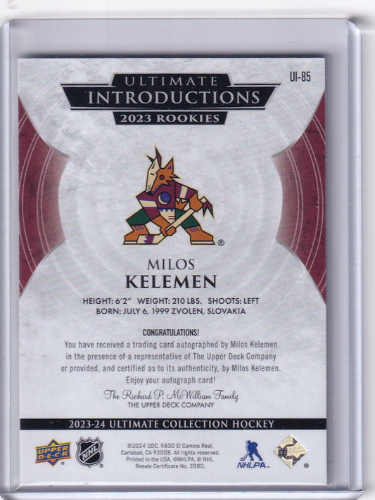 Milos Kelemen Ultimate Introductions Rookie Auto Card UI-85 2023-24 Upper Deck Ultimate Collection Rookie Card RC Arizona Coyotes