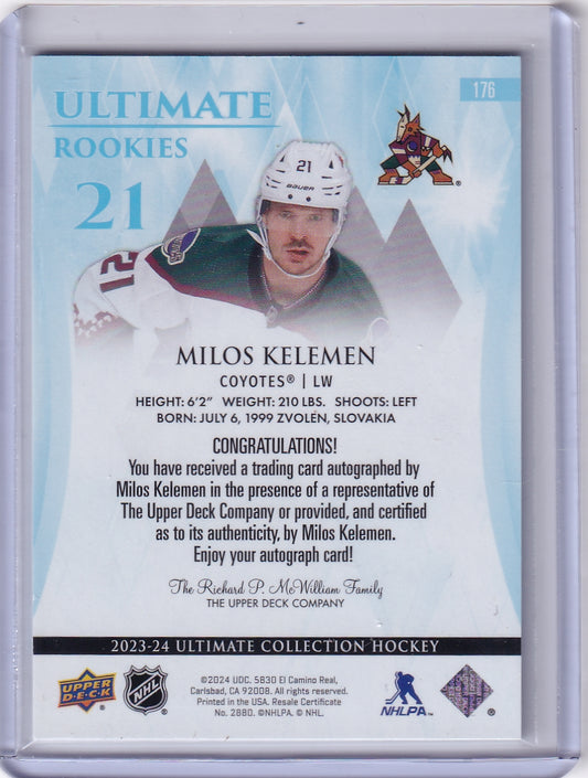 Milos Kelemen Ultimate Rookies Auto Card /299 #176 2023-24 Upper Deck Ultimate Collection Rookie Card RC Arizona Coyotes