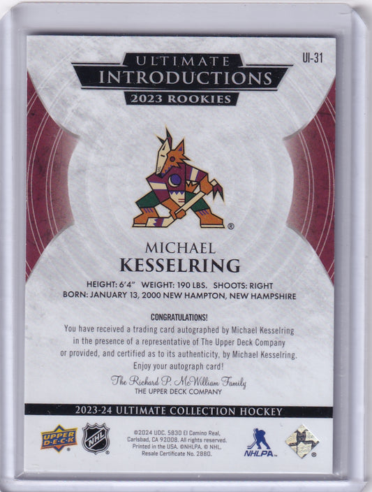 Michael Kesselring Ultimate Introductions Rookie Auto Card UI-31 2023-24 Upper Deck Ultimate Collection Rookie Card RC Arizona Coyotes