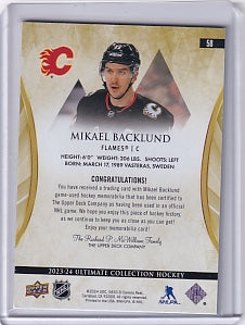 Mikael Backlund Jumbo Jersey /149 Card #58 2023-24 Upper Deck Ultimate Collection Calgary Flames