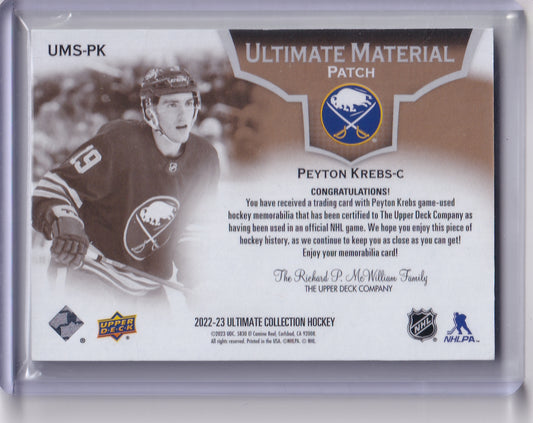 Peyton Krebs Ultimate Material Patch /35 UMS-PK 2022-23 Upper Deck Ultimate Collection Buffalo Sabres