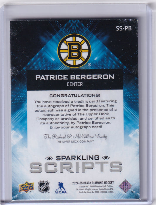 Patrice Bergeron Sparking Scripts Auto SS-PB 2024-25 Upper Deck Black Diamond Boston Bruins