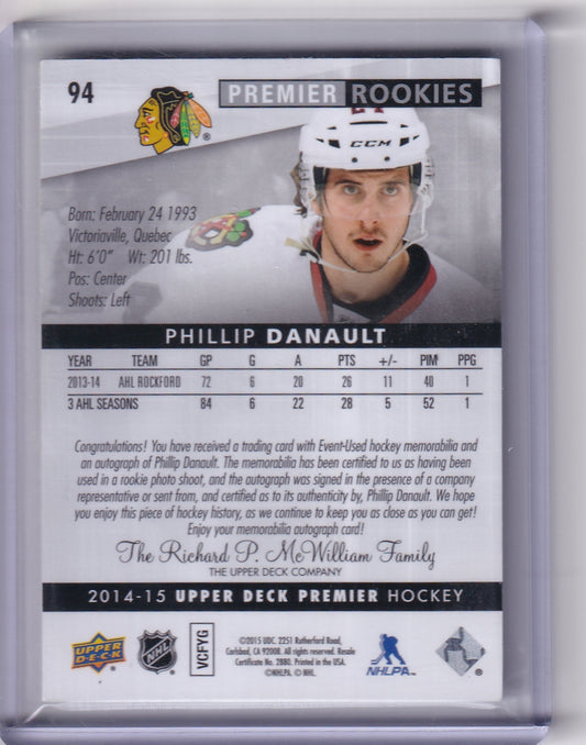 Phillip Danault Rookie Patch Auto RPA /299 #94 2014-15 Upper Deck Premier Chicago Blackhawks Rookie Card RC