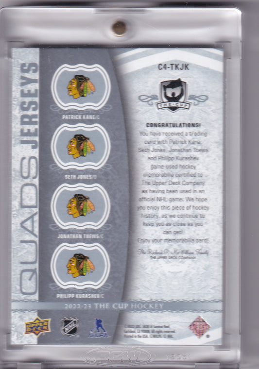 Patrick Kane Jonathan Towes Seth Jones Phillipp Kurashev Quad Jerseys /25 C4-TKJK 2022-23 Upper Deck The Cup Chicago Blackhawks
