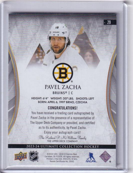 Pavel Zacha Ultimate Base Auto Card #29 2023-24 Upper Deck Ultimate Collection Boston Bruins