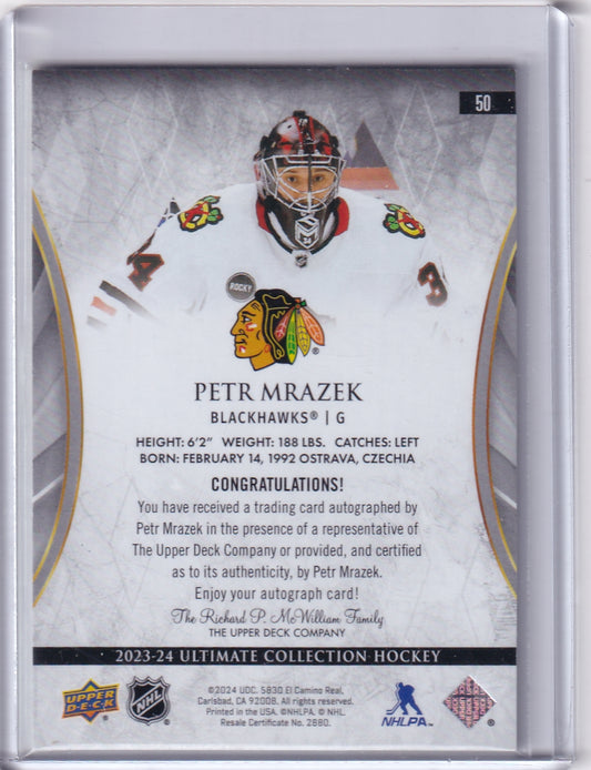 Petr Mrazek Gold Auto /30 Card #50 2023-24 Upper Deck Ultimate Collection Chicago Blackhawks