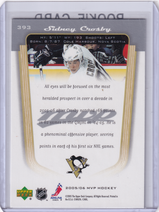 SIDNEY CROSBY 2005-06 UD MVP Rookie Card #393 Pittsburgh Penguins RC