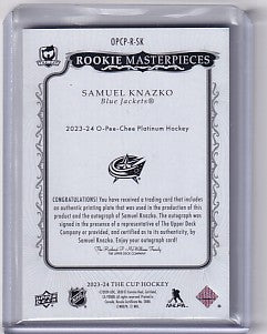 Samuel Knazko 2023-24 The Cup Rookie Masterpieces Yellow Printing Plate Autograph 1/1 OPCP-R-SK Columbus Blue Jackets