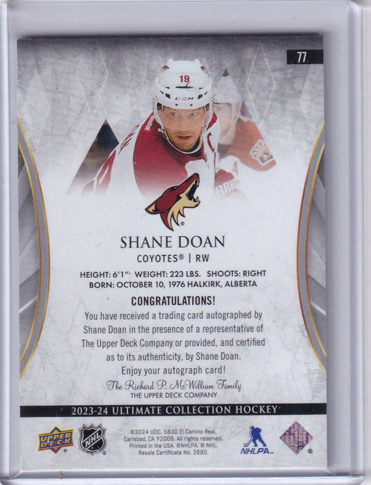 Shane Doan Ultimate Base Auto Card #77 2023-24 Upper Deck Ultimate Collection Arizona Coyotes