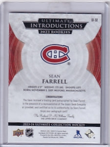 Sean Farrell Ultimate Introductions Rookie Gold Auto /50 Card UI-58 2023-24 Upper Deck Ultimate Collection Rookie Card RC Montreal Canadiens