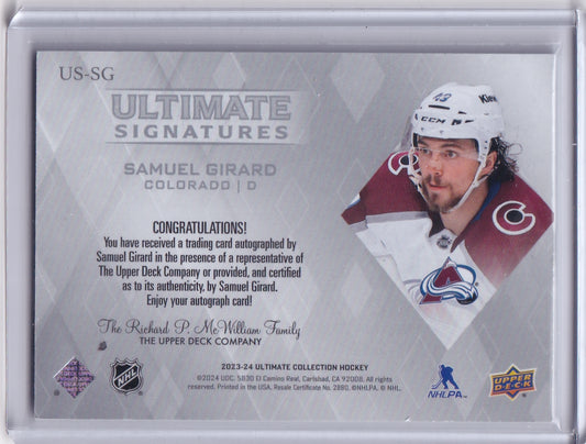 Samuel Girard Ultimate Signatures Auto Card US-SG 2023-24 Upper Deck Ultimate Collection Colorado Avalanche