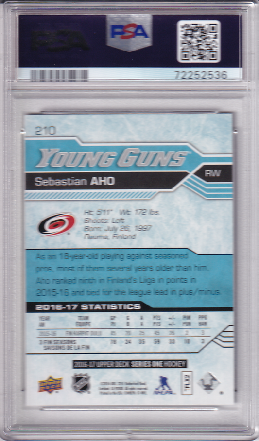 SEBASTIAN AHO 2016-17 Upper Deck UD Young Guns Rookie Card #210 PSA 10 Carolina Hurricanes RC