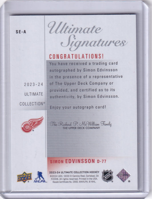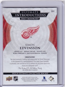 Simon Edvinsson Ultimate Introductions Rookie Auto Card UI-8 2023-24 Upper Deck Ultimate Collection Rookie Card RC Detroit Red Wings