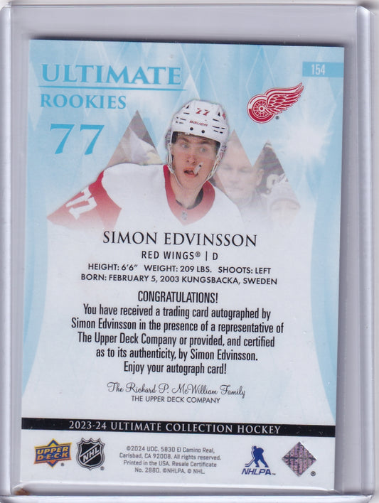 Simon Edvinsson Ultimate Rookies Auto Card/299 #154 2023-24 Upper Deck Ultimate Collection Rookie Card RC Detroit Red Wings