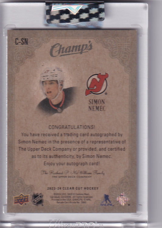 Simon Nemec Champs Rookie Auto C-SN 2023-24 Upper Deck Clear Cut New Jersey Devils Rookie Card RC