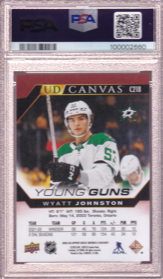 WYATT JOHNSTON 2022-23 Upper Deck UD Canvas Young Guns Rookie Card #C218 PSA 10 Dallas Stars RC
