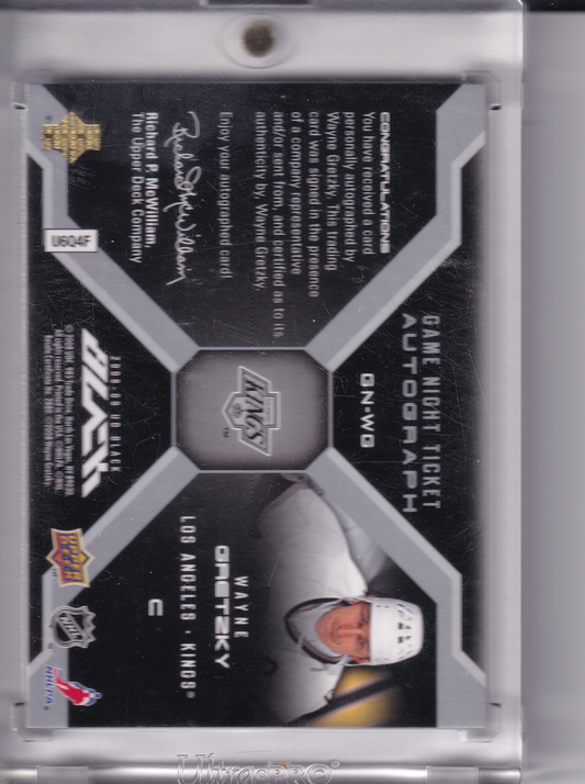 WAYNE GRETZKY 2008-09 UD Black Game Night Ticket (802 Goal Game) Autograph 13/25 Los Angeles Kings #GN-WG